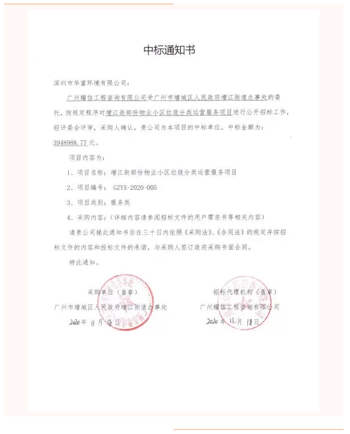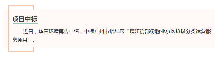 恭贺公司中标广州市增城区“增江街部份物业小区垃圾分类运营服务项目”