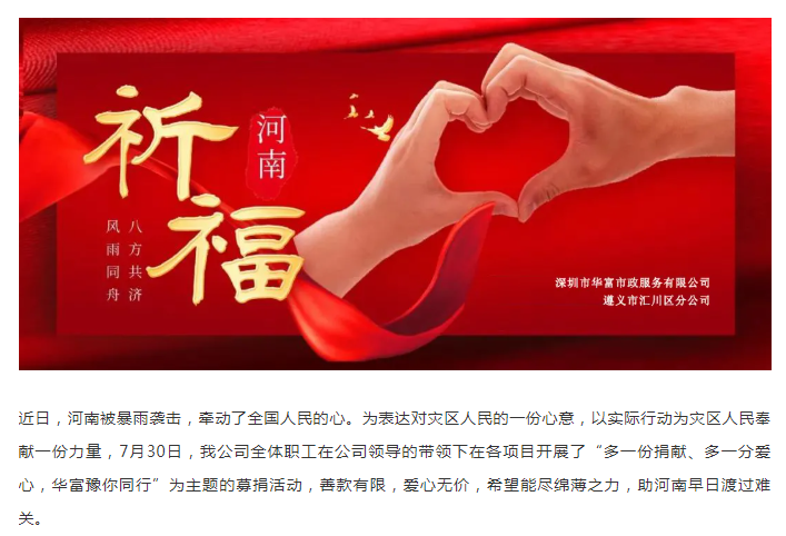 传递温暖 共渡难关| 多一份捐献、多一分关爱,华富“豫”你同行——华富遵义分公司