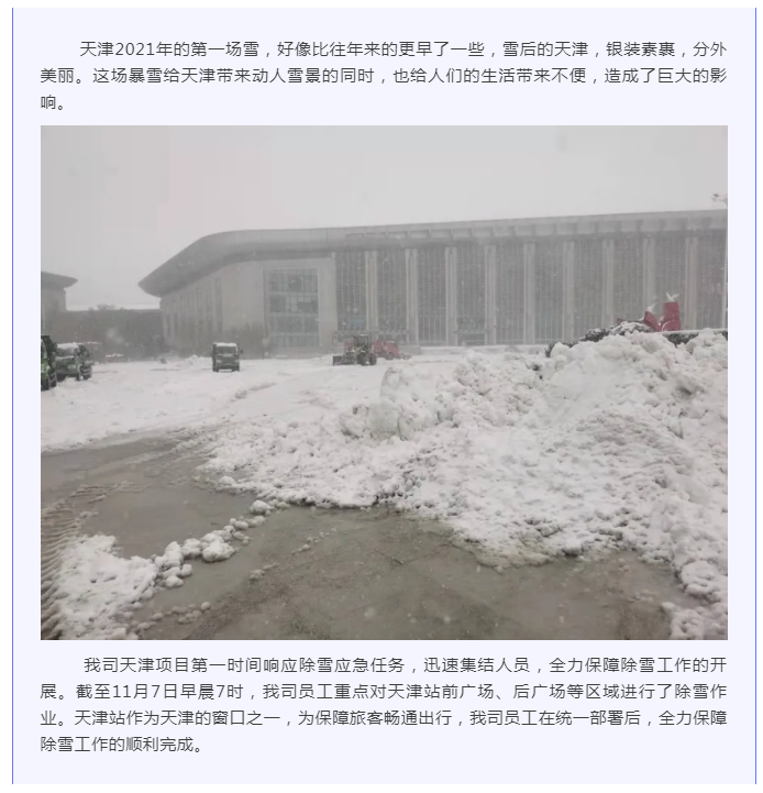 项目动态 | 以雪为令!华富天津项目全力以赴做好除雪工作