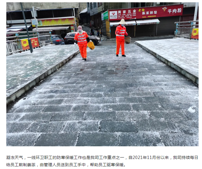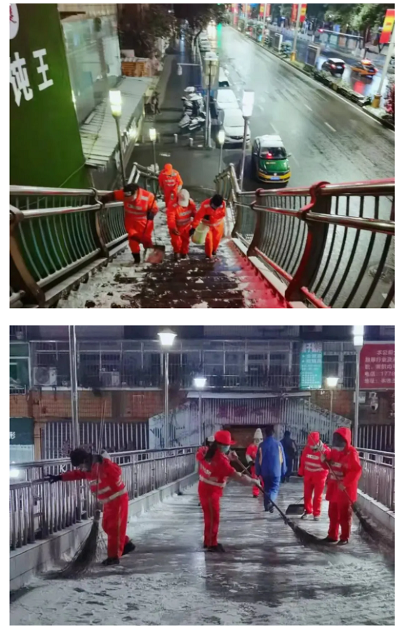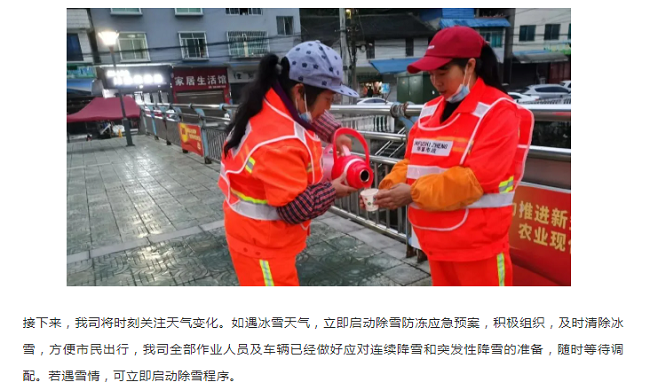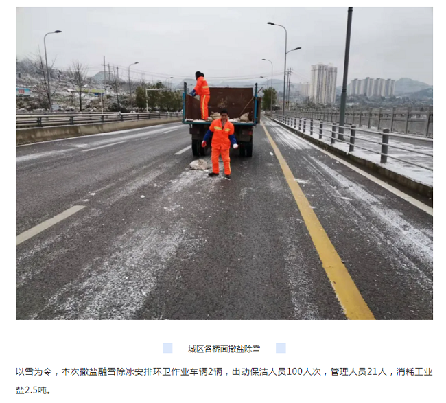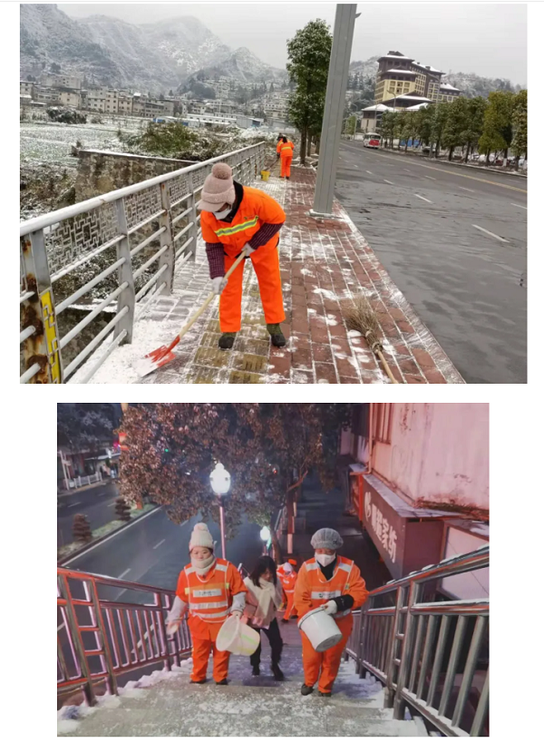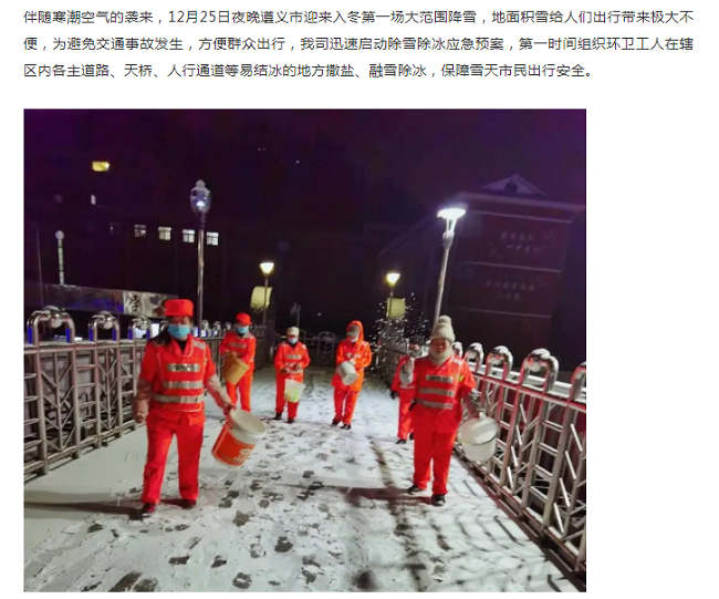 工作动态 | 环卫工人撒盐融雪保畅通——华富遵义分公司