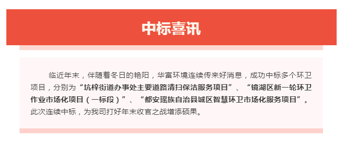 强势发力!华富环境中标捷报频传