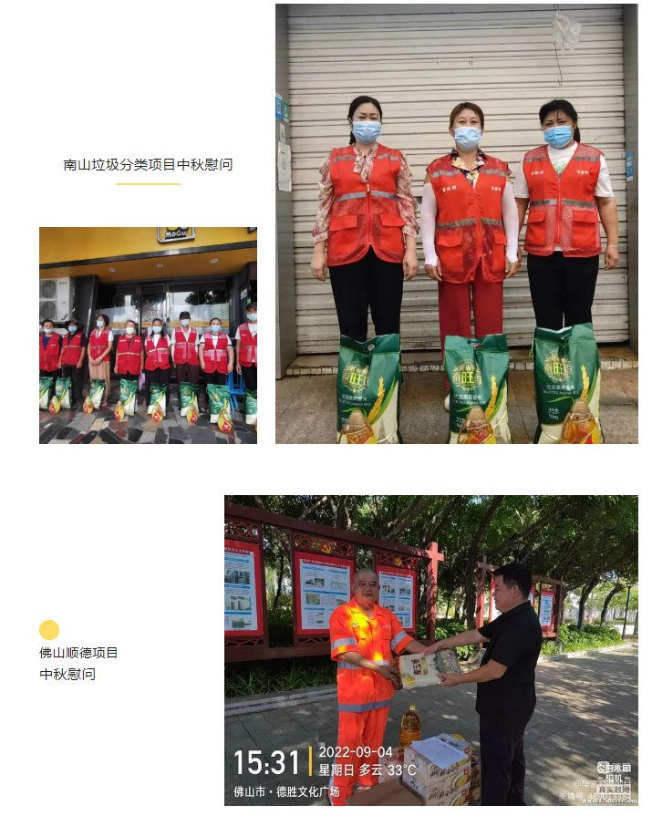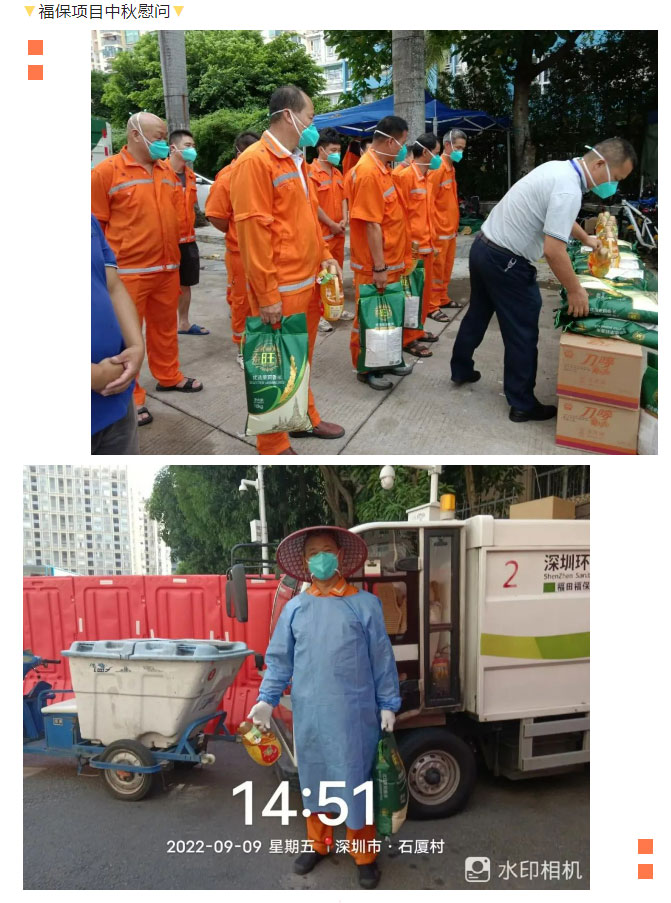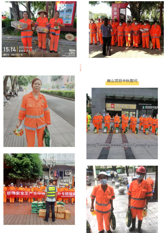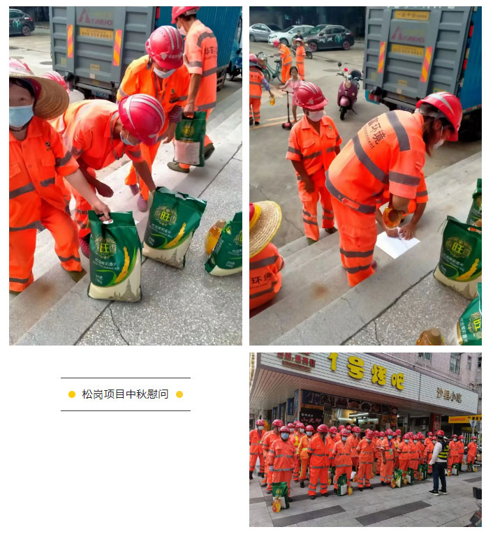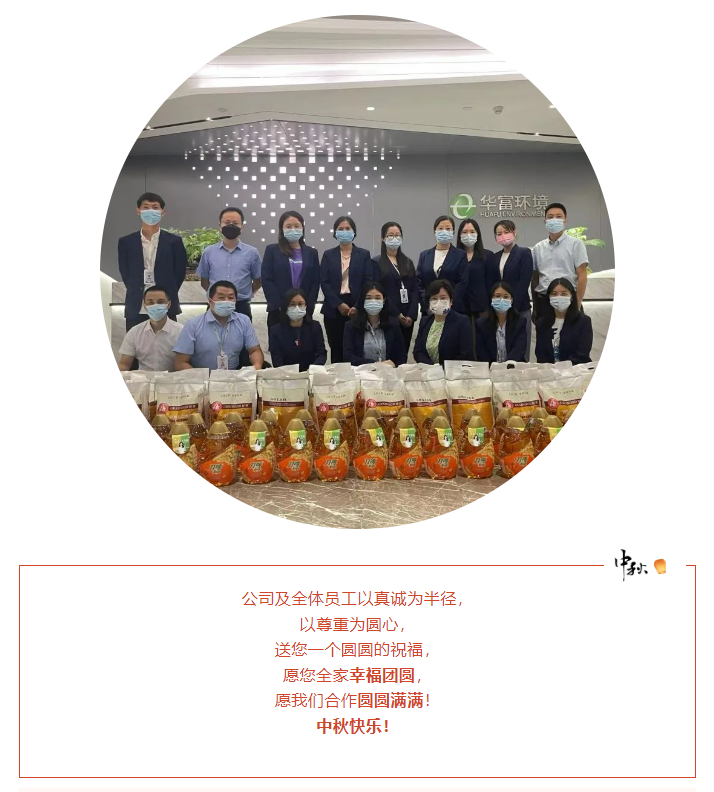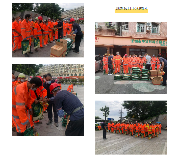 此次中秋慰问活动的开展,表达了我司对奋战在一线环卫工作员工的美好祝福和衷心感谢,同时充分展示了公司的人文关怀与家文化理念。我司始终坚持以人为本的核心理念,充分利用节日慰问、“夏送清凉”、“冬送温暖”等活动拉近公司、项目部与一线员工之间的距离,让全体华富人实实在在地感受到公司对他们的关心和关爱,真正体会到华富大家庭的温暖,进一步提升了公司的凝聚力和向心力,推动公司环卫事业又好又快发展。