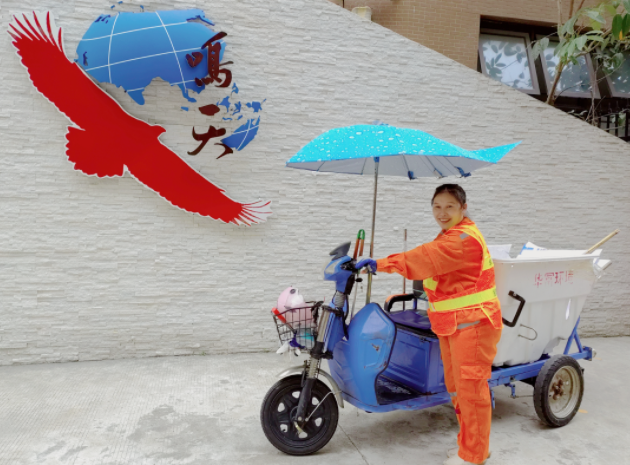“华富环境的管理非常人性化,也给我们了增加了很多的设备,像小水车、小推车、小扫地车、三轮保洁车,以前做的手都要起泡,都是靠人力清扫、搬运垃圾,现在轻松了不少”,她笑着跟我们说道。