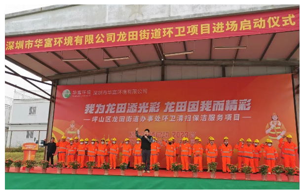 3月30日上午10点,坪山区龙田街道环卫清扫保洁服务项目启动仪式在坪山区顺利举行。