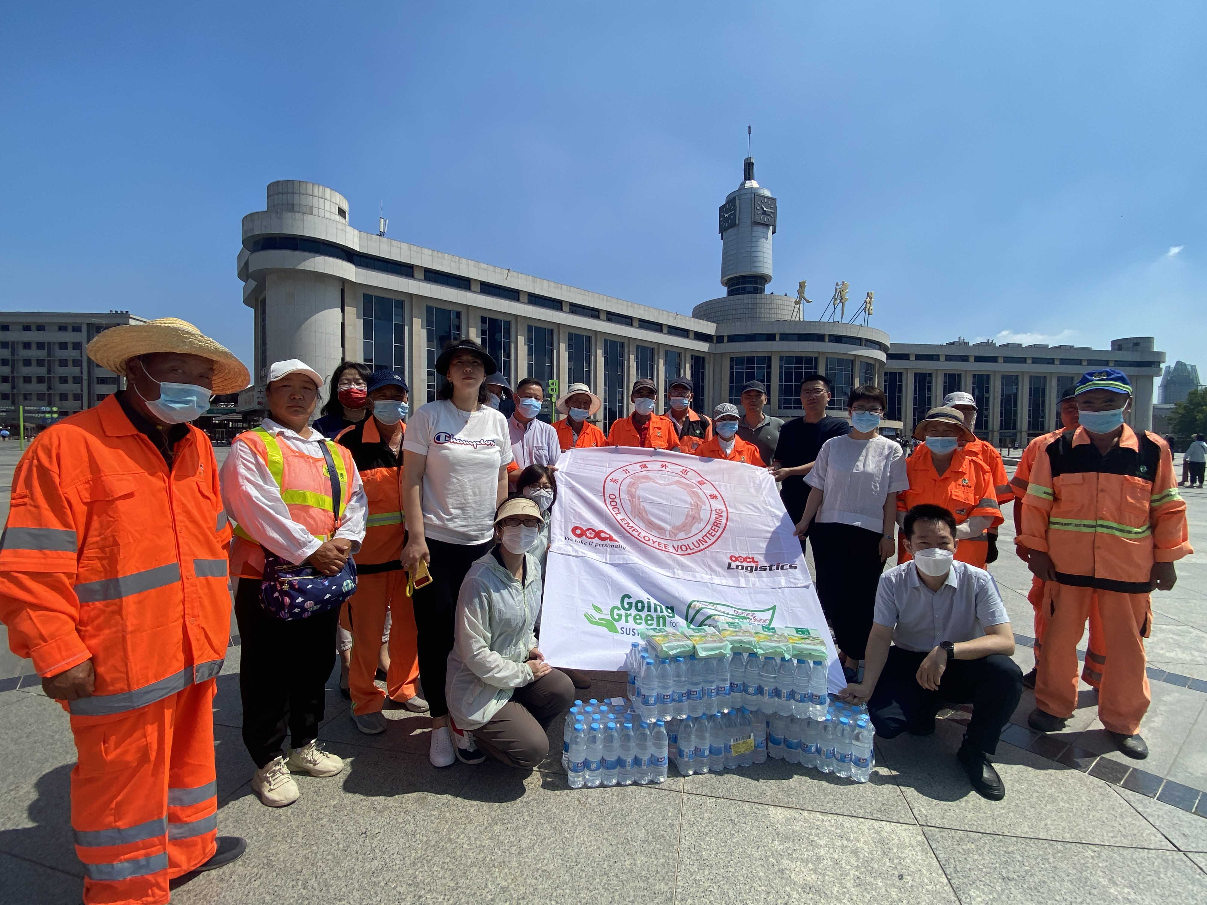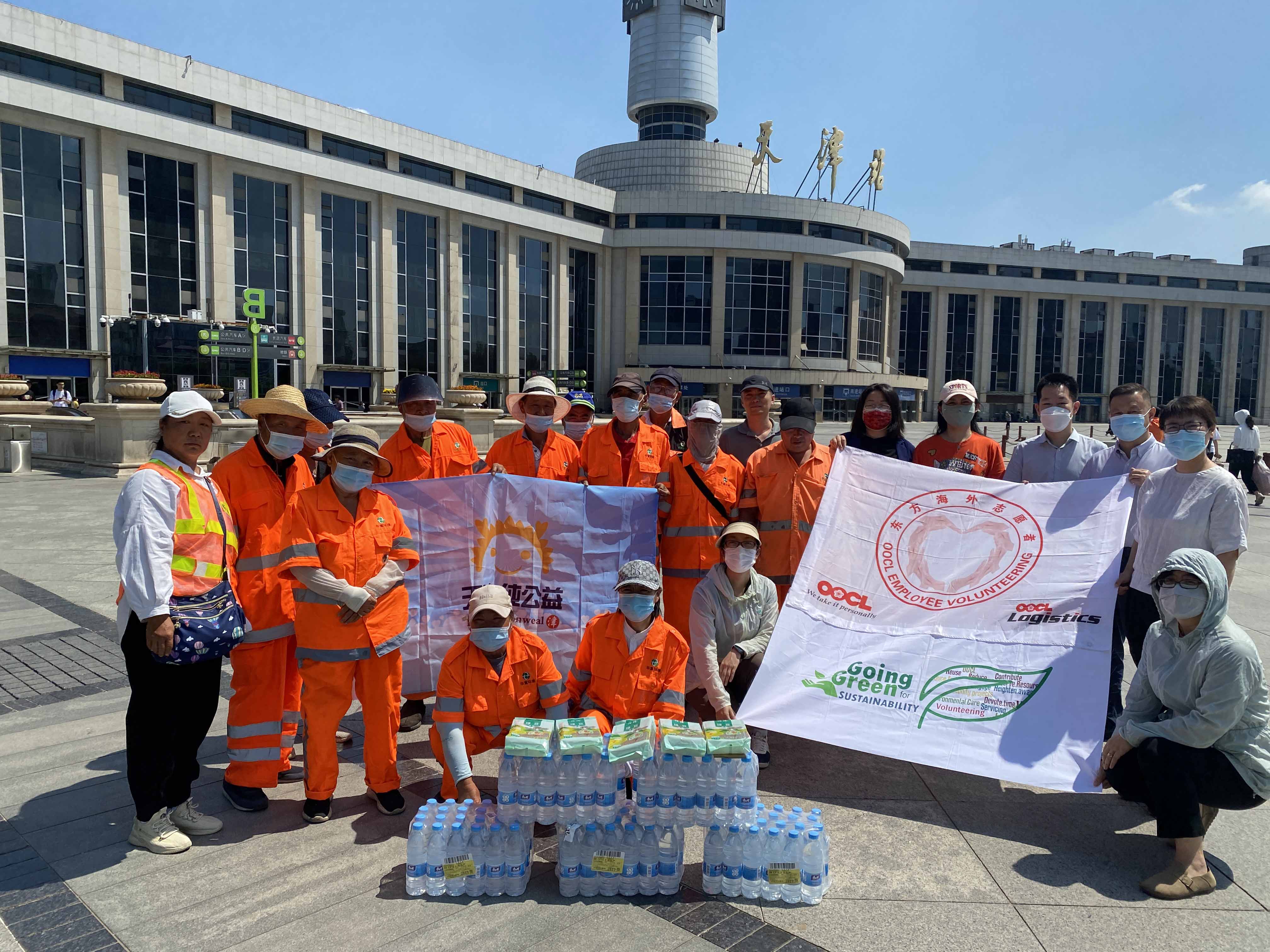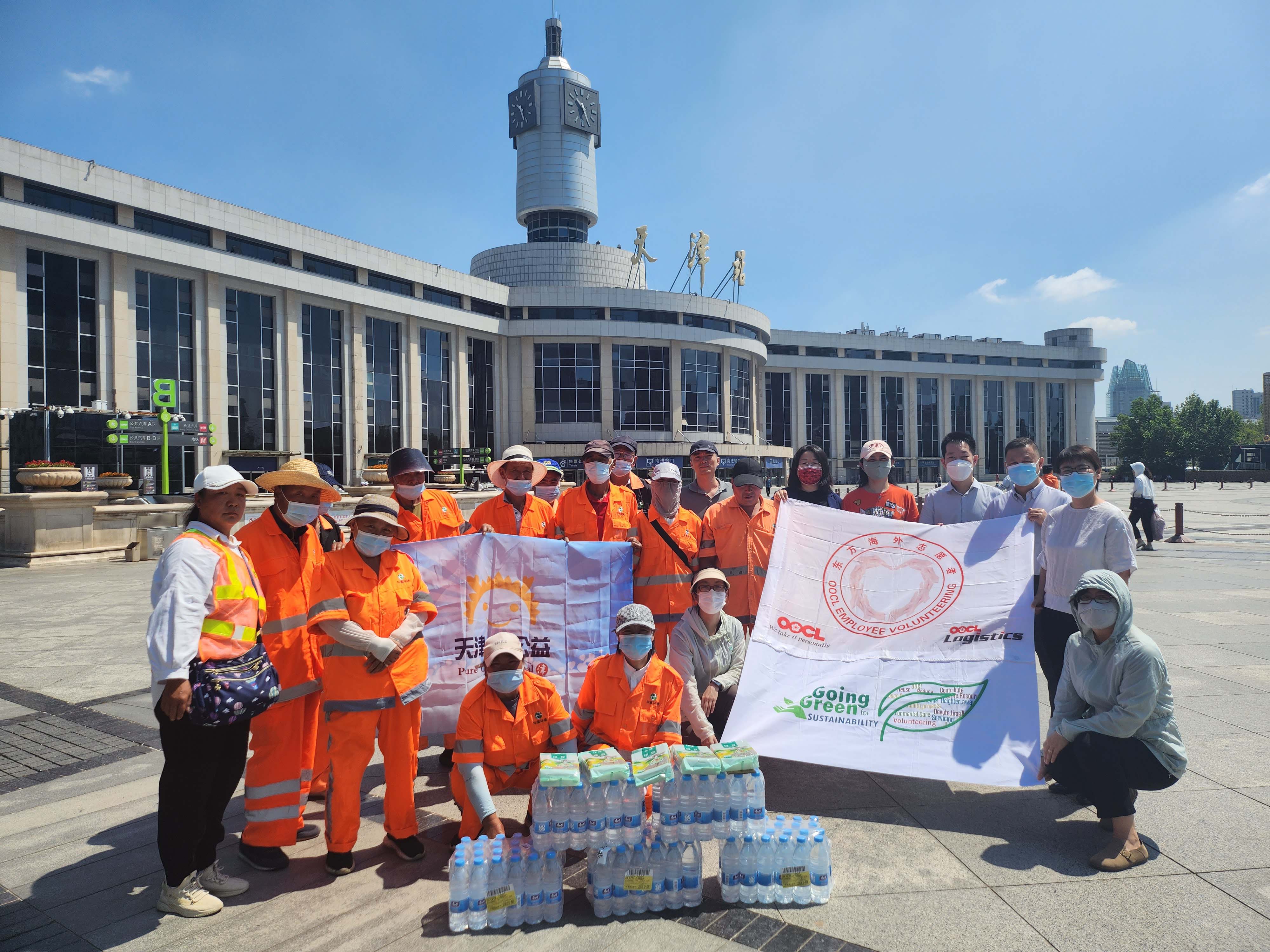 一份清凉、一份关怀、一份爱心。近日,天津纯公益志愿服务队携手东方海外物流(中国)有限公司天津分公司在天津站广场为华富河东项目的环卫工人们送上了“清凉大礼包”,冰凉的矿泉水、解渴的绿豆汤为酷暑的夏日带来了几丝清爽,不少环卫工人们露出了灿烂的笑容。
