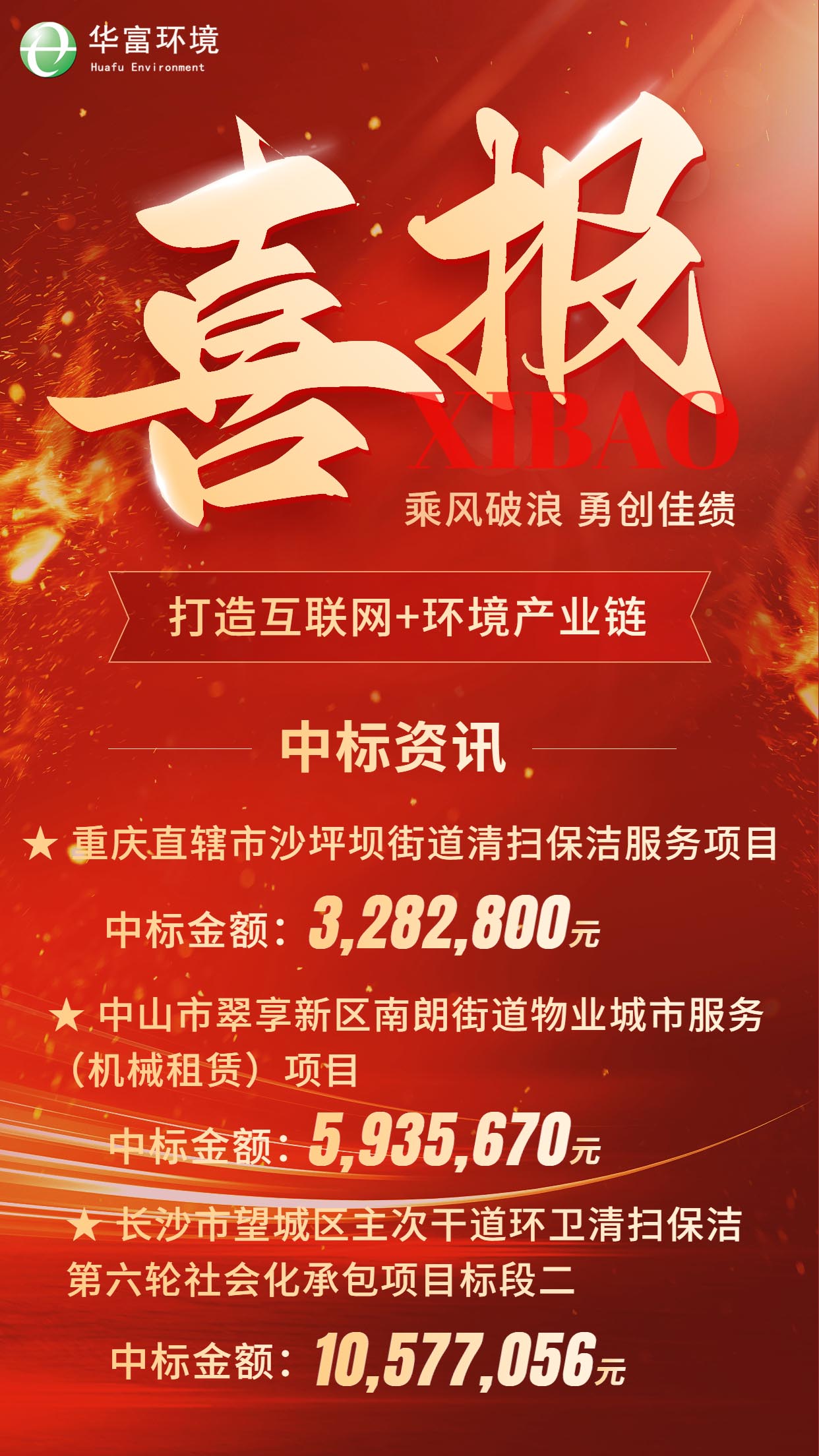 七月骄阳似火,华富捷报频传,成功中标“ 重庆直辖市沙坪坝街道清扫保洁服务项目 ”、“ 中山市翠享新区南朗街道物业城市服务(机械租赁)项目 ”、“ 长沙市望城区主次干道环卫清扫保洁第六轮社会化承包项目标段二 ”。