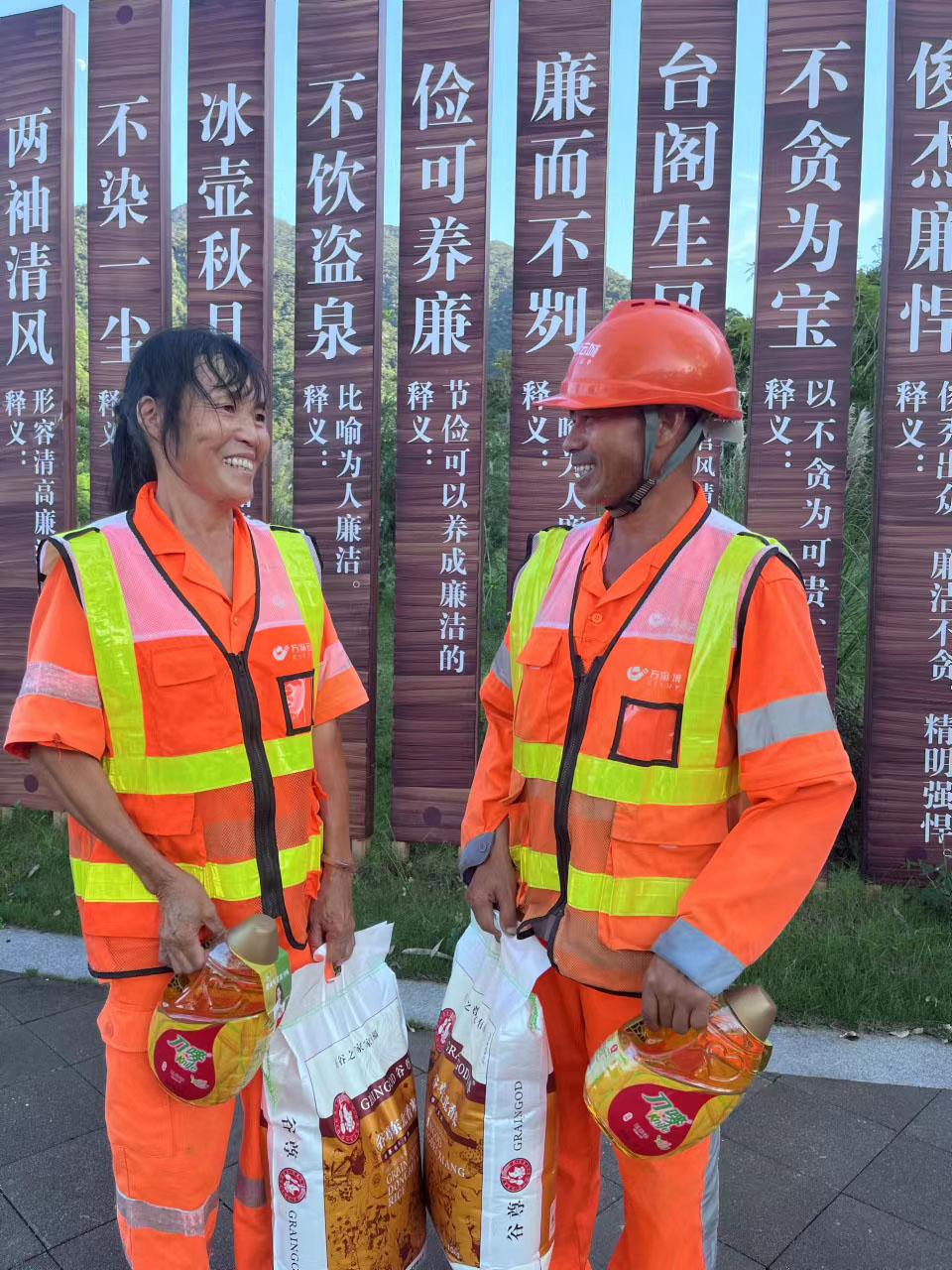 近日华富环境工会为忙碌在一线的项目员工们送上粮油、香米等中秋慰问品以及节日的祝福,叮嘱他们时刻注意作业安全同时希望员工们继续发扬吃苦耐劳、甘于奉献的华富精神,以永不懈怠的精神状态和饱满的工作热情,不断提升工作质量,打造更洁净、更美丽的人居环境。
