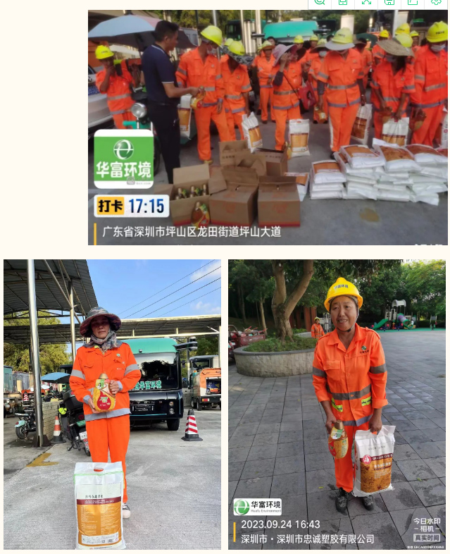一直以来,我司始终坚持“以人为本”的管理理念,把公司生产经营和员工文化生活紧密结合,形成了员工为企业发展作贡献、企业为员工生活谋福利的良好传统,每逢传统佳节华富环境都会走进项目暖心慰问,发放温馨福利,切切实实让员工感受到公司的真情和关怀,真正将员工幸福感、归宿感与企业发展融合起来。