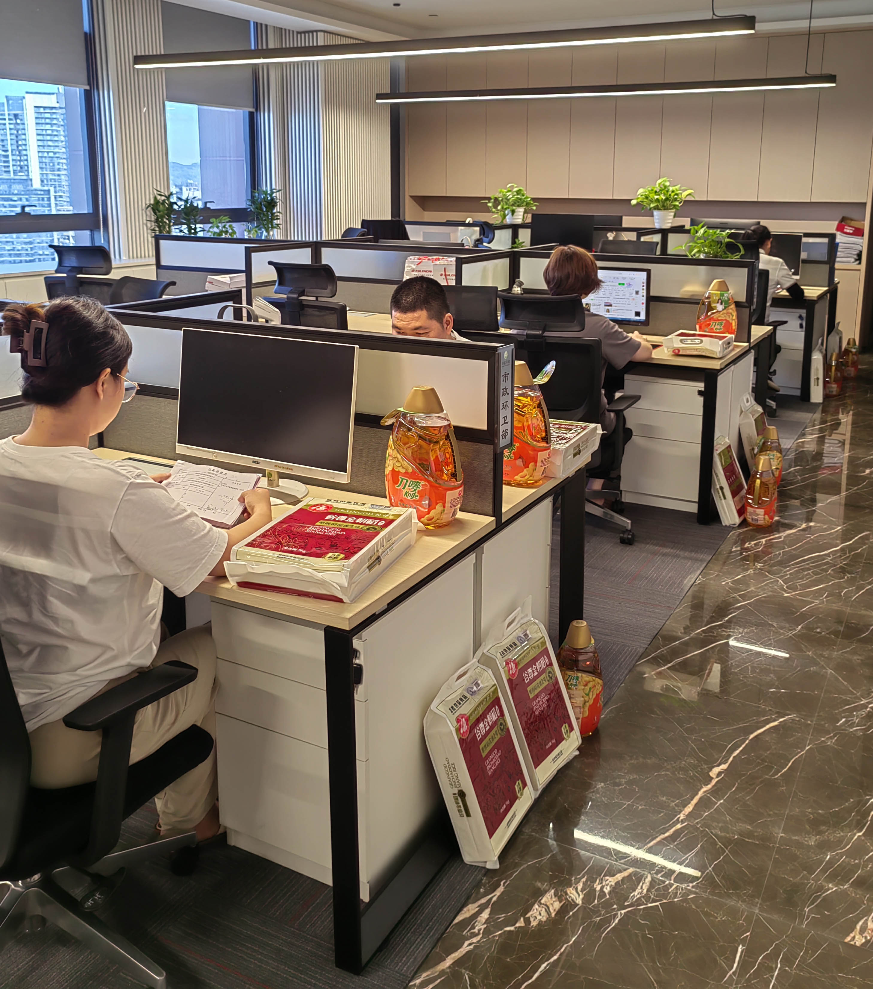 柴米油盐寓意衣食无忧,象征着财源滚滚,幸福美满。中秋福利发放现场洋溢在一片温馨和谐的喜庆气氛中,员工们的喜悦之情溢于言表。大家纷纷表示:到手的是福利,装到心里面的是责任。深圳松岗项目的王阿姨说到:我们又度过一个有意义的节日,每袋米每瓶油都代表公司对我们的心意呀!在今后的工作中,将把公司给予的关怀转化为奋进的力量,以更加饱满的热情投入到本职工作中。”