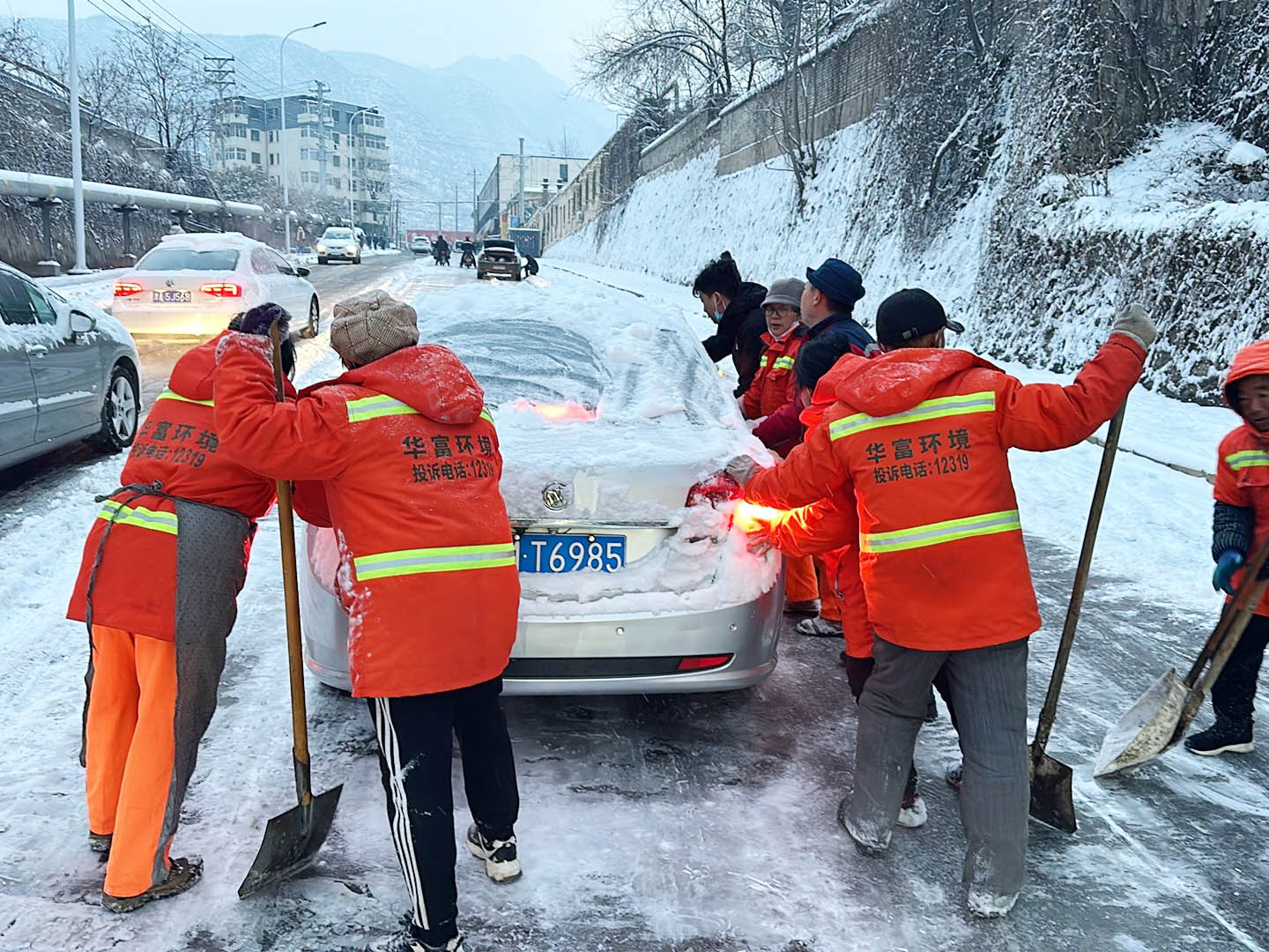 本轮降雪天气到来之前,华富天津项目、涉县天铁项目已提前储备融雪剂。在除雪工作中,出动多台环卫铲车、大型洒水车、小型推雪车、铁锹、推雪板和清雪滚刷等除雪设备对南京路、河北路、大光明桥、福安大街、解放北路、天津站、天铁黄花社区等主要路段分重点分时间进行除雪作业。