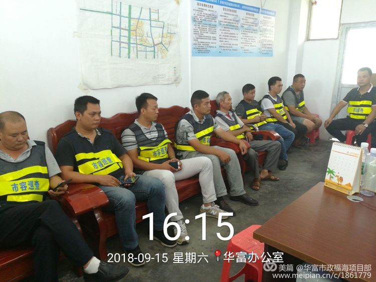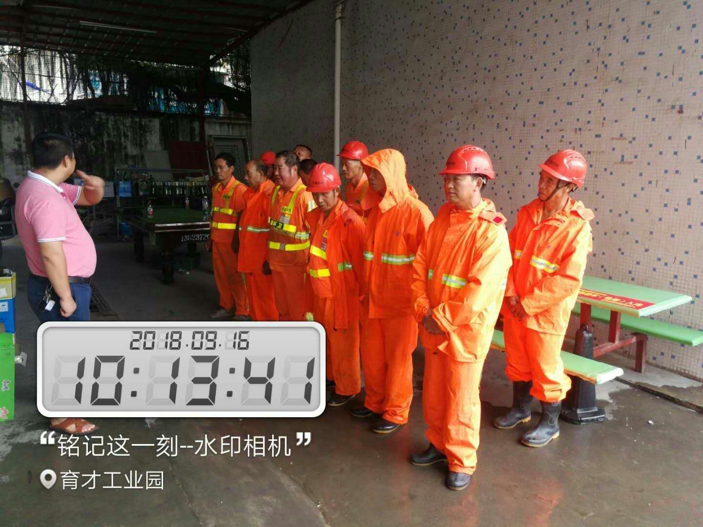 随后,管理人员对各小组员工开会:为预防超级台风“山竹”,召开警急安全作业会议,做好防范措施,加强安全意识培训,不得在树下,广告牌,高压线,高层建筑物周围及危险地段作业等,做好躲避台风准备。