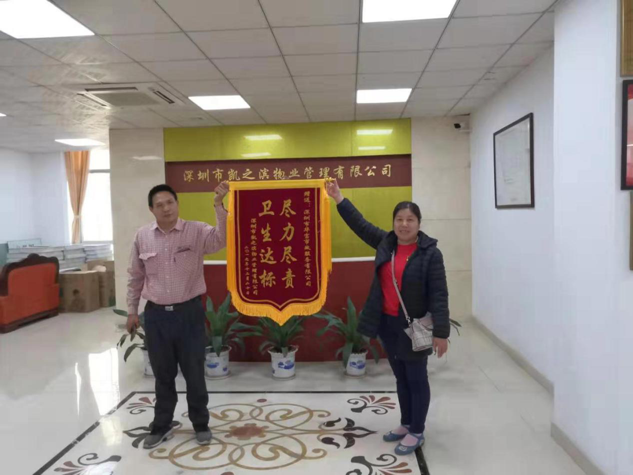 近日,深圳市华富市政服务有限公司大浪项目接收到来自下岭排物业公司、深圳市凯之滨物业管理有限公司、深圳市大浪石凹物业管理分公司、黄麻埔物业股份有限公司及罗屋围物业有限公司赠予的“尽力尽责,卫生达标”锦旗。所服务区域内的三家物业公司对华富大浪项目工作人员尽职尽责、用心服务的工作态度给与高度的赞扬并送上诚挚感谢。