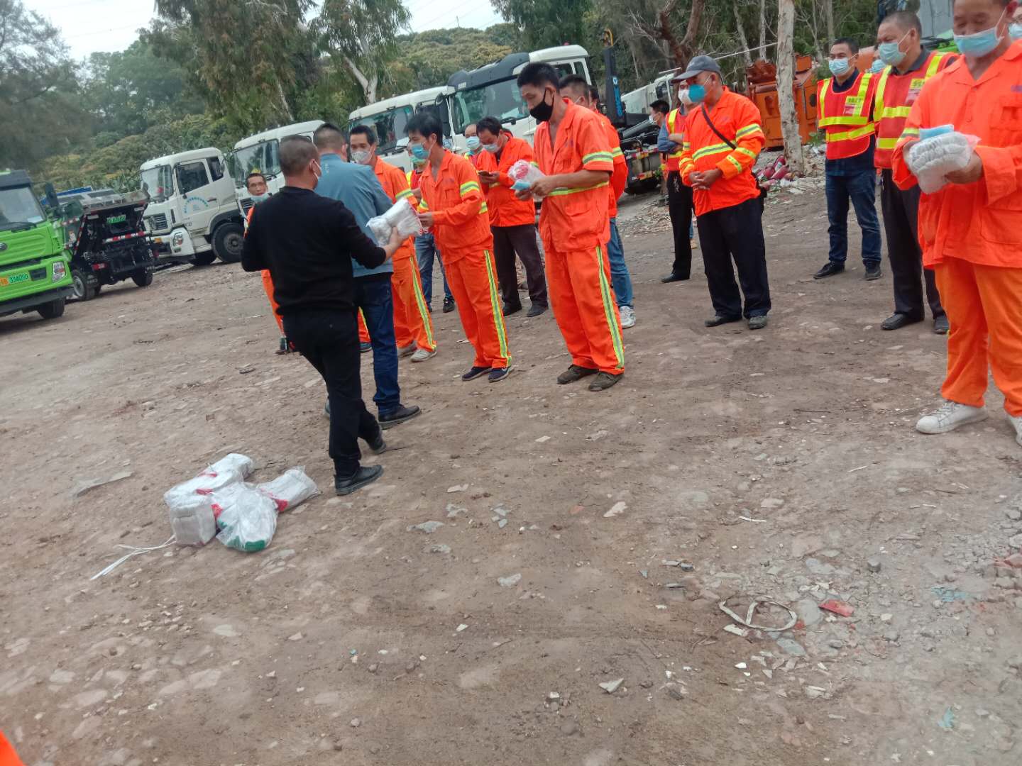 华富环境西乡项目为员工发放口罩等物资