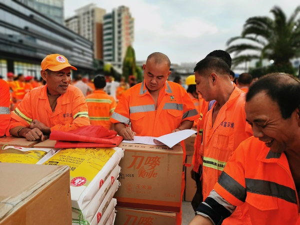 福保项目发放环卫工人节慰问物资