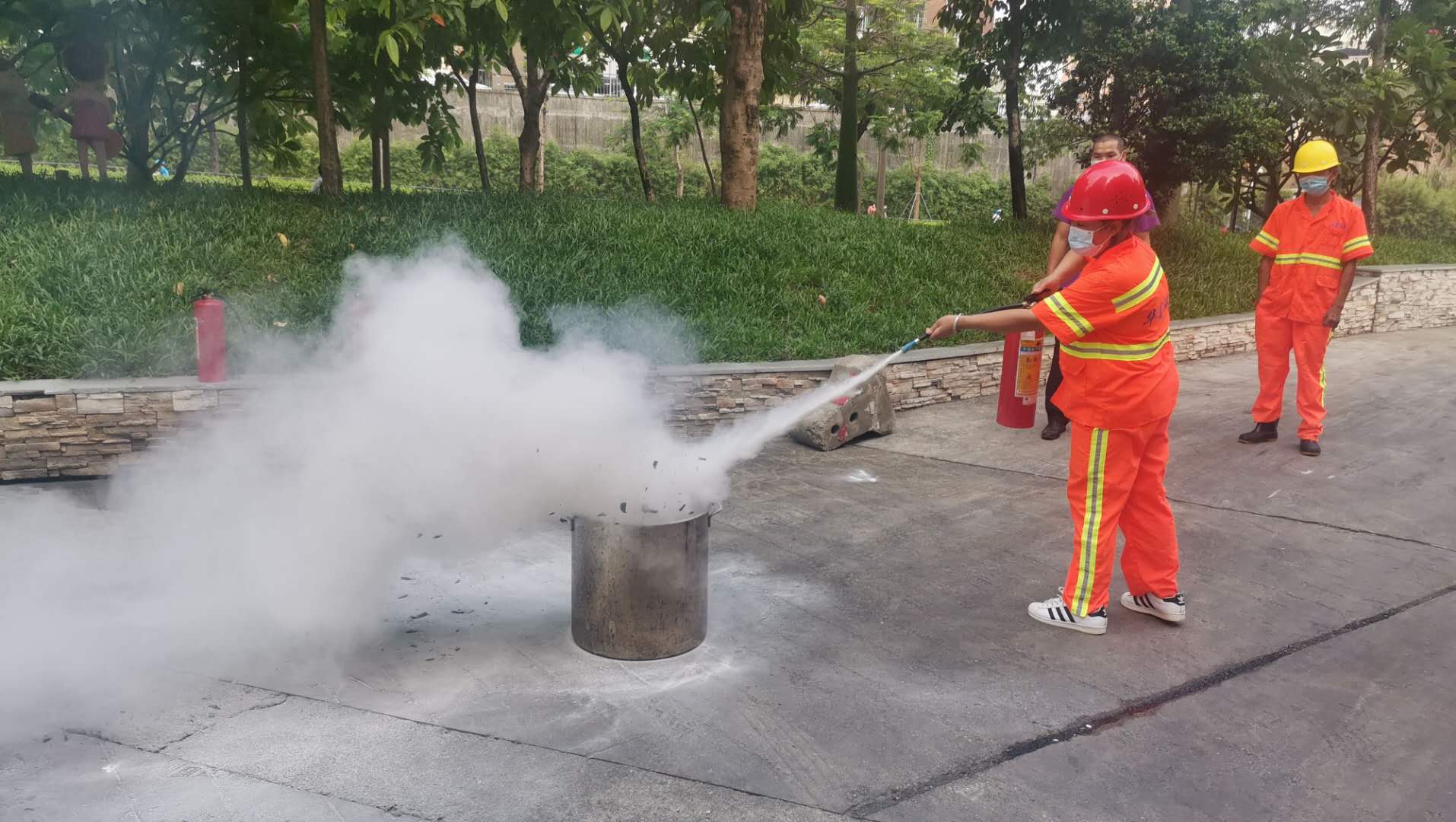 现场演练如何使用灭火器